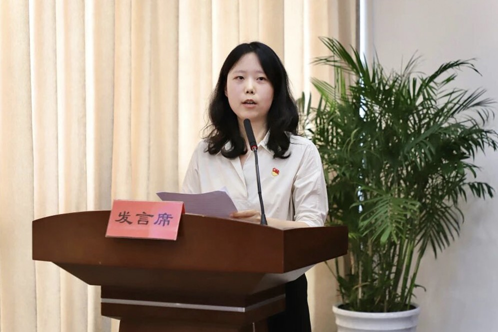 招商中心支部书记王雪婷、中化学华谊装备支部书记许建锁、麦克林支部书记马德茂、昂博支部书记祝英英作交流发言。