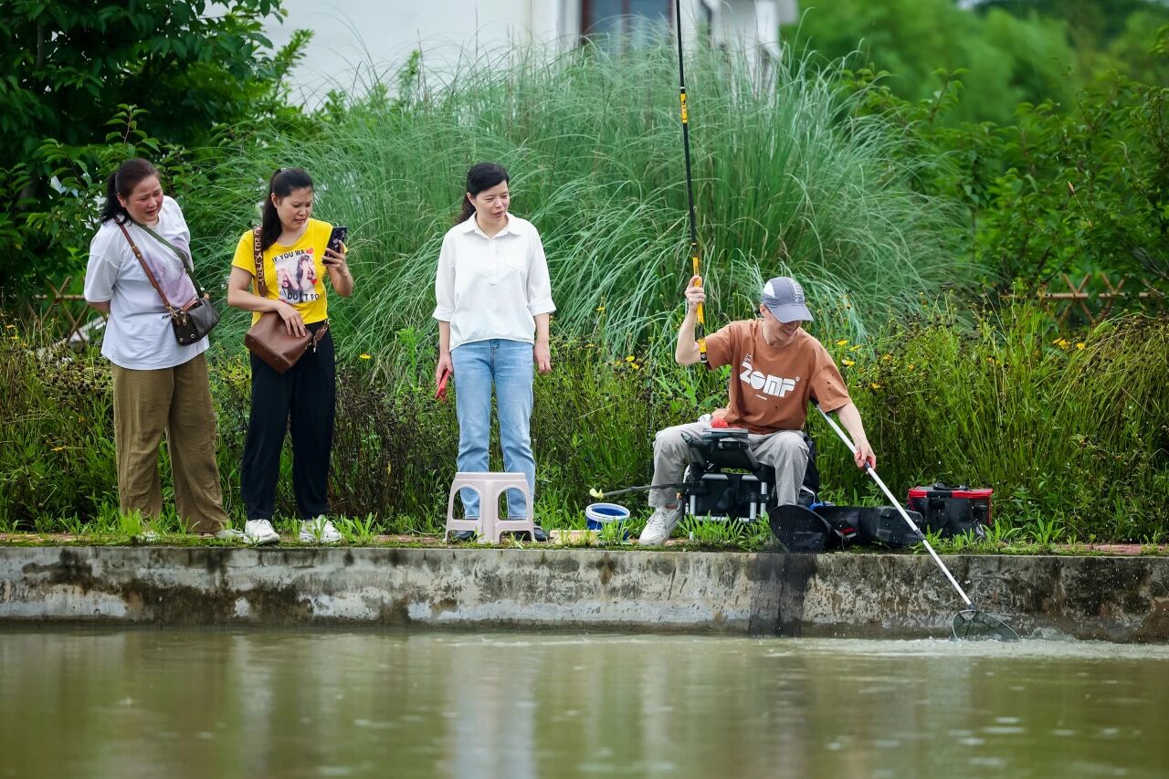 比赛开始,参赛选手认真仔细地调配鱼饵、安装渔具、搭建鱼窝,接着将鱼线抛向水面,裹着饵料的鱼钩落入水中,静静等待鱼儿上钩。参赛选手中,有多年的钓鱼高手,他们经验丰富、动作娴熟;也有涉足垂钓不久的“新人”,他们更是兴趣浓厚、不甘示弱。