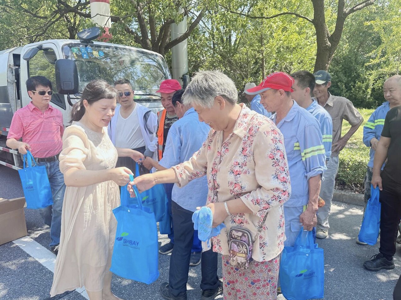 为切实做好户外职工夏季防暑降温工作,加大关心关爱力度,8月1日,上海杭州湾经济技术开发区总工会副主席李慧琴一行带着满满的关爱,亲切慰问开发区道路保洁、绿化养护等户外职工,送上精心准备的防暑降温品和饮料,感谢他们的辛勤付出,同时叮嘱他们在高温天气作业时,注意自我防护以防中暑。